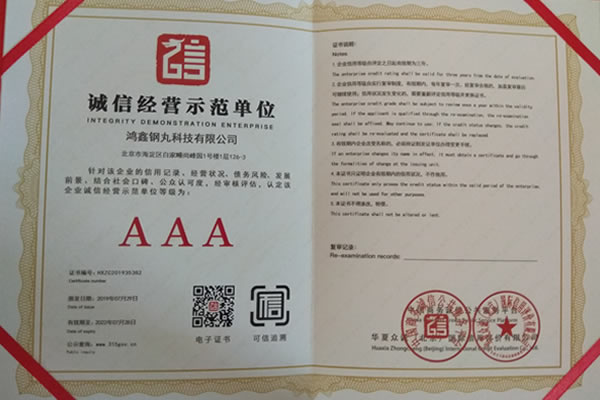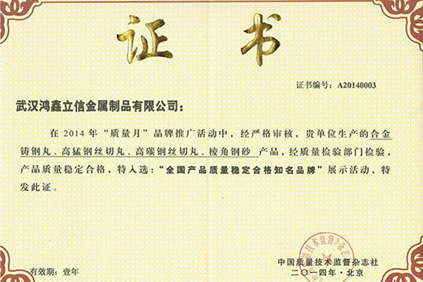 公司所有產(chǎn)品均通過ISO9001 **質量認證,2014年更獲得了第三屆中國金屬磨料行業(yè)具有影響力品牌-華尊獎